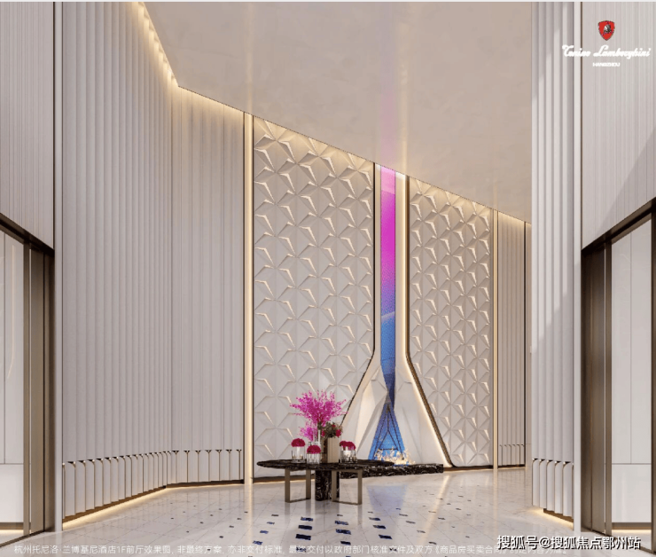 往里走,是两个大堂,一个是瑰郦中心大平层大堂,一个是兰博基尼酒店大堂。