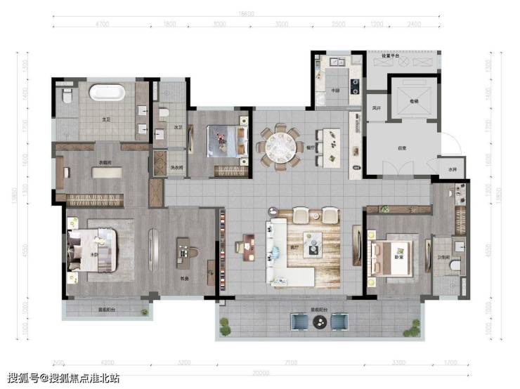四房两厅三卫进阶空间,奢心大平层致敬主人优雅腔调,主卧源自国际铂尔曼行政套房体验,阳台、衣帽间、豪华震撼独卫,共鸣主人非凡空间。约9.9米阳台,更是将社区生态揽入怀中,生活与自然无碍往来。