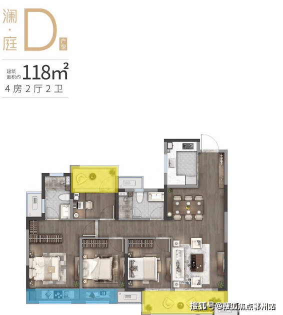 【澜庭D户型 】 ‼️建筑面积约118㎡‼️