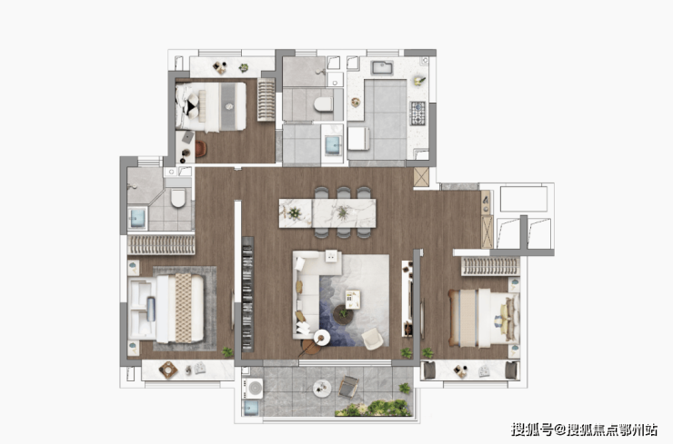 [尊崇] 套房主卧臻配独卫、瞰景飘窗,私享静谧起居