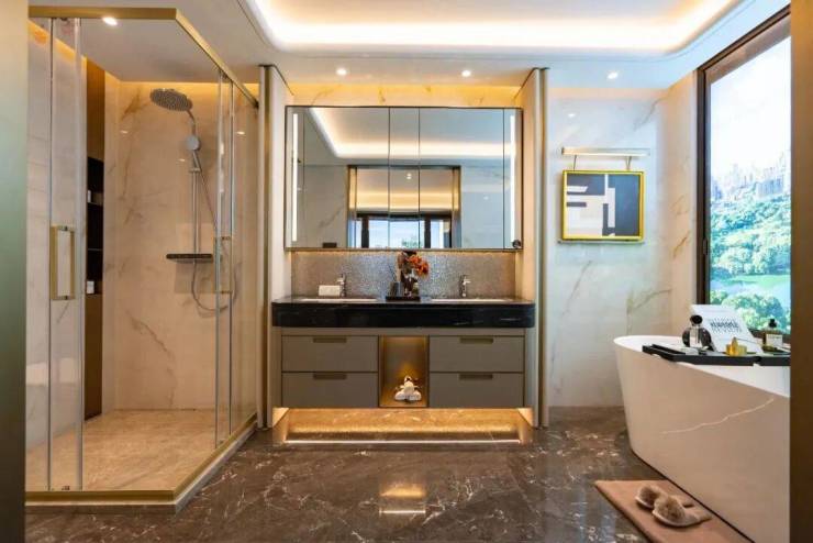 项目高定奢标严选全球高端旗舰品牌,交付标准包括弗兰卡、唯宝、耶鲁、 汉斯格雅 、大金、玫瑰岛、博世、书香门地等国内外一线品牌,精致感和奢华感拉满。