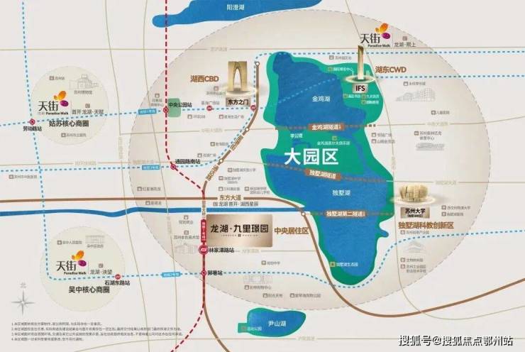 【双湖大城·黄金置业板块】《独墅湖西开放创新协同发展示范区》文件正式确认独墅湖西为园区共同体,标志着双湖大城正式崛起;以双湖为中央生态核, “现代大道—通达路—纵向7号线—独墅湖第二隧道—星湖街”构建环形发展轴,双湖四角贯通,形成黄金闭环。
