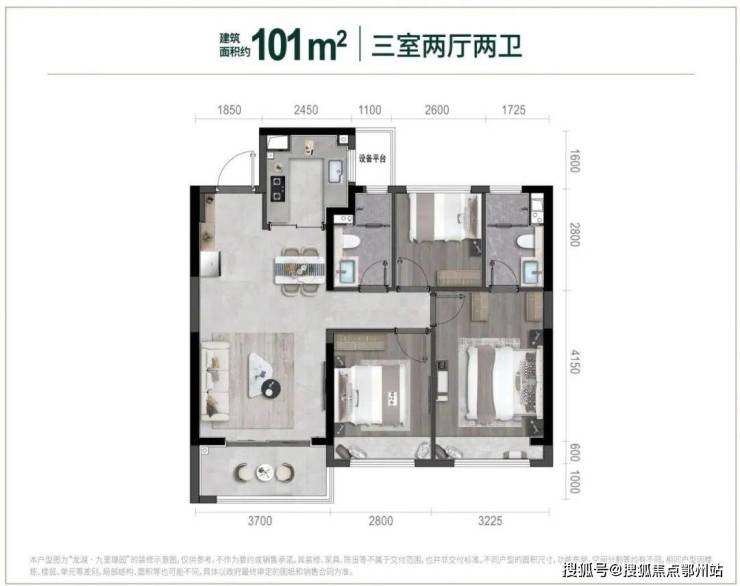 户型方面只有3种,101㎡的户型较为传统。