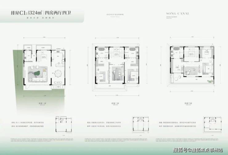 建筑面积约为136-176㎡ ,控制得当。虽然产权面积被有效控制,但墅居产品该有的空间感却没有减少, 前庭后院、地下延展空间、屋顶空间 .....一系列空间,与市场上300㎡+产品在尺度表现上并无太大差异。
