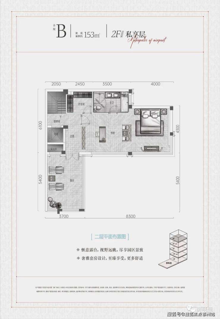 2F“私享层”实际为地上第3层,设计为主卧+衣帽间+卫浴+书房+露台的奢侈大套房。
