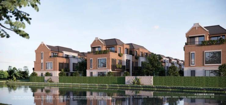 西郊十年未见级臻席低密墅区,约1km双水岸环抱,约20米宽景观生态河道,约270°广角河景