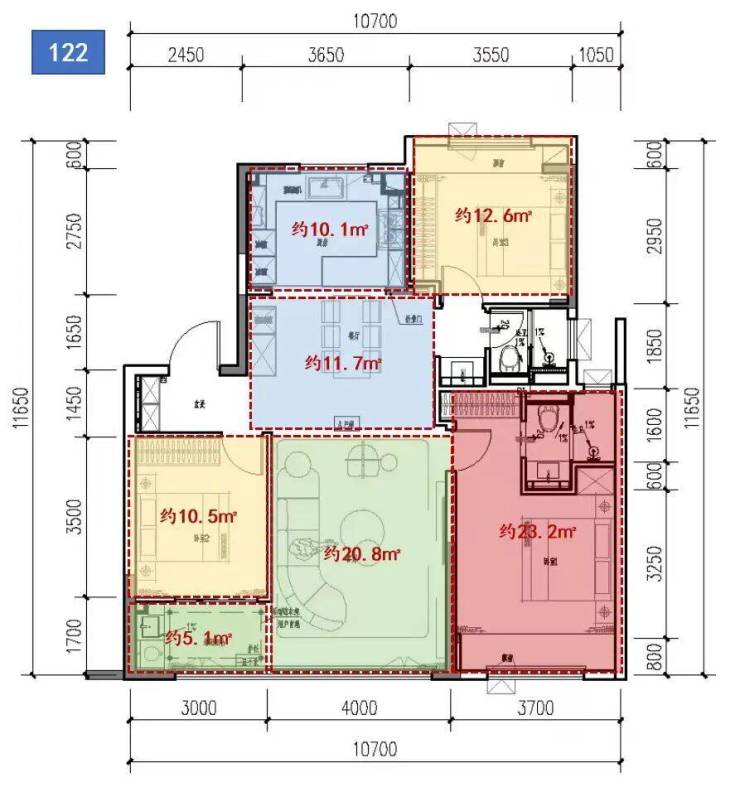 璞悦 | 建筑面积约122㎡三室两厅两卫户型