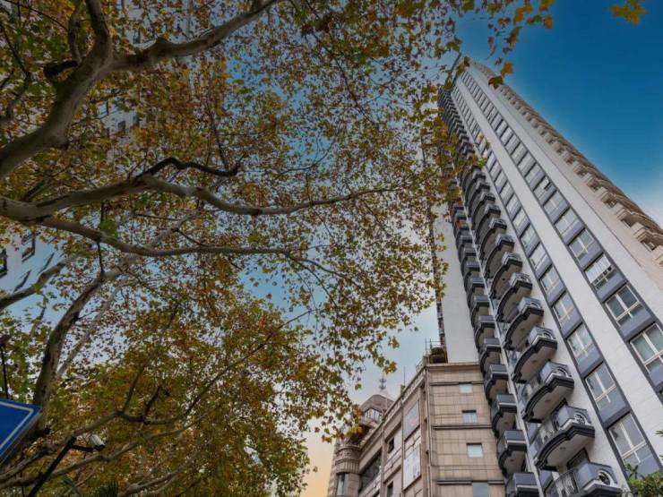 陕西南路888无疑正是上海城心难得的高品质住宅。 首先是外立面,在梧桐树叶的簇拥下,白色的立面挺拔庄严,辨识度极高!