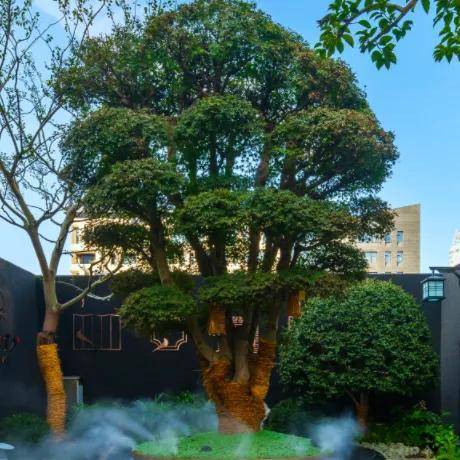以卓越的窗墙比和大面积灰蓝玻璃,极简化打造光影天幕,倒映自然之境;在东方屋檐和宋韵飞檐之上,融揉现代审美工艺,诠释当代建筑的东方大美;近40吨汉白玉、近100吨原生太湖石、巴金西口“璀璨年华”奢石、300岁高龄的进口珊瑚枫、20年红梅,数十年贵妃罗汉松、羽毛枫和黑松,近百年的原生紫薇……随处可见。