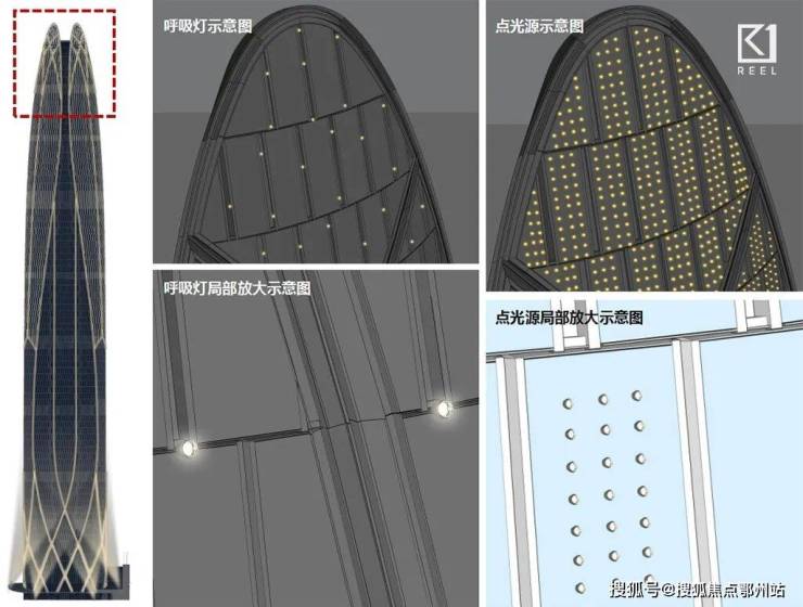 Lighting is closely linked to the core image of "Lotus". We integrate the elegant and upward posture of lotus into the language of light and shadow. The building base is paved with soft and warm light, such as the fertile soil for the growth of lotus, conveying the temperature of urban fireworks; The facade uses line lights to outline the rhombic texture, which looks like the lotus petals stacked. The lights alternate between light and dark, reproducing the flexible rhythm of the blooming lotus, echoing the gentle details of Jiangnan Water Town in Ningbo, and strengthening the identification of architectural form. At the top, the "lotus heart" visual focus is created by focusing highlights, creating a bright logo of the city's night skyline.