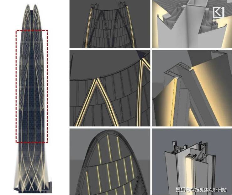 塔冠部分的灯光设计与实施,是我们打造城市天际线亮点的关键所在。从设计理念上,我们紧紧围绕建筑顶部独特的造型。形似莲花融合的塔冠轮廓,在灯光的映照下,被赋予了全新的生命力。我们精心布置了点状与线状相结合的灯具,点状灯光均匀分布在40米高的塔冠玻璃幕墙区域,如同夜空中闪烁的繁星,既增添了灵动之感,又凸显了建筑的科技感与现代感。