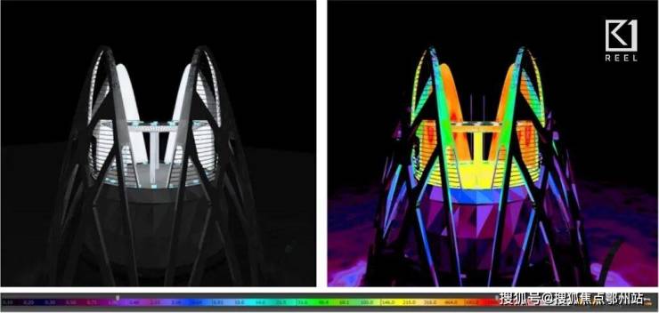 而线状灯光则沿着塔冠的结构线条勾勒,强化了建筑的立体轮廓。在色调选择上,采用了暖白与冷白交替的方式。暖白光营造出温馨而柔和的氛围,拉近建筑与城市居民的距离;冷白光则带来简洁明快的视觉冲击,展现出建筑的挺拔与高雅。