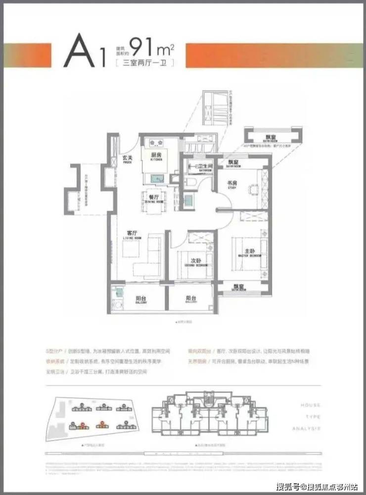全是9️⃣1️⃣平三房一卫户型