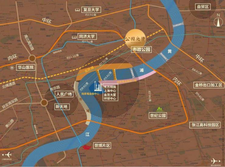 雄踞上海浦西内环旁,南靠北外滩,距离黄浦江岸约3.5公里15分钟车程直达陆家嘴商务中心。