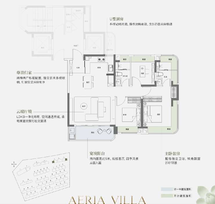 地上两层从容布局,满足多代同堂的居住需求。特别是 二层南向的超尺度主卧套间 ,配备270°环幕视野、独立卫浴及衣帽间,其奢华体验堪比顶级酒店套房。 主卫亦享有270度转角飘窗 ,让日常洗漱成为一种景观享受。