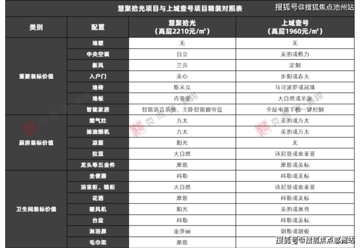 从品牌来看,两项目相差不大,都是市面上常用品牌,品质有一定保障,上城壹号在部分电器上采用美的产品,档次会稍弱一些。
