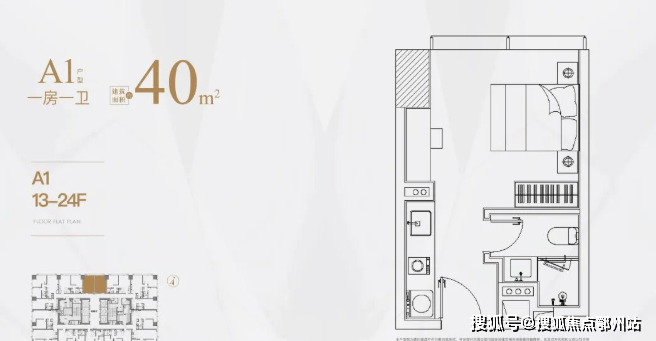 低区13-24层,户型分别是 40㎡,55㎡,80㎡,107㎡;