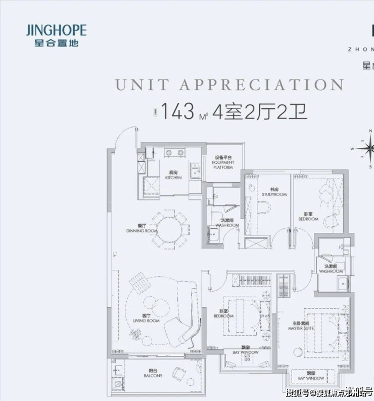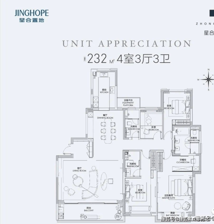 户型面积:125-232㎡,涵盖三居至四居,主力户型为143㎡(4室2厅)和178-232㎡(4室3厅)