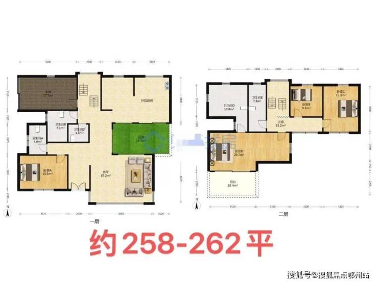 户型面积:258-297平方米