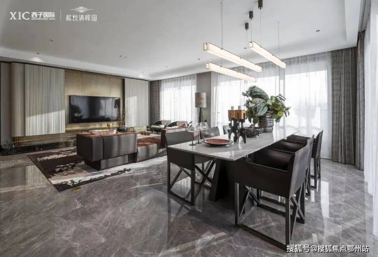 无论是190㎡的上叠还是下叠,餐客连厅达到近40㎡,再配合大面积落地窗采光,空间的尺度感扑面而来。这样的餐客厅尺度,在同类产品里(200㎡以下)已是最大。