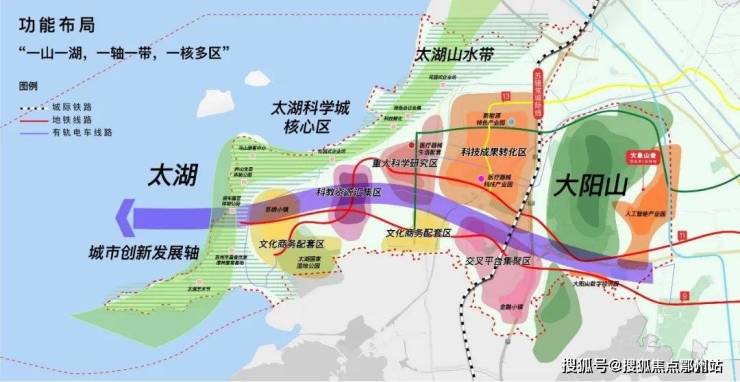 在最新发布的高新区空间规划格局中,布局上形成了以大阳山为城市生态绿心,中心城区、浒通、湖滨三大独立片区包围的局面。并随着太湖科学城的规划落地,未来必将具备是“国家级”的产+学+研+城融于一体的发展实力。