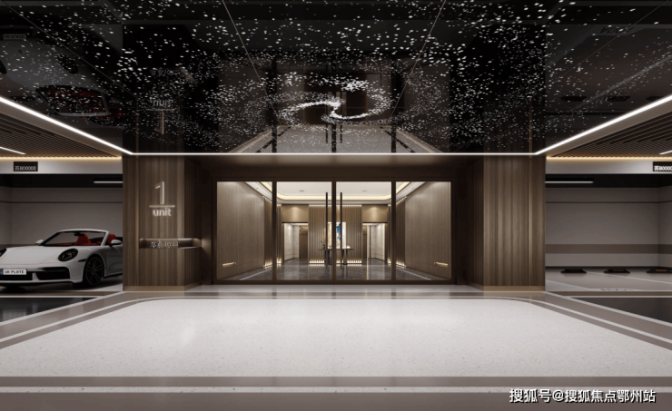 |地下车库配备仿银河铝板星空顶,专属私密入户空间,点亮业主回家的好心情
