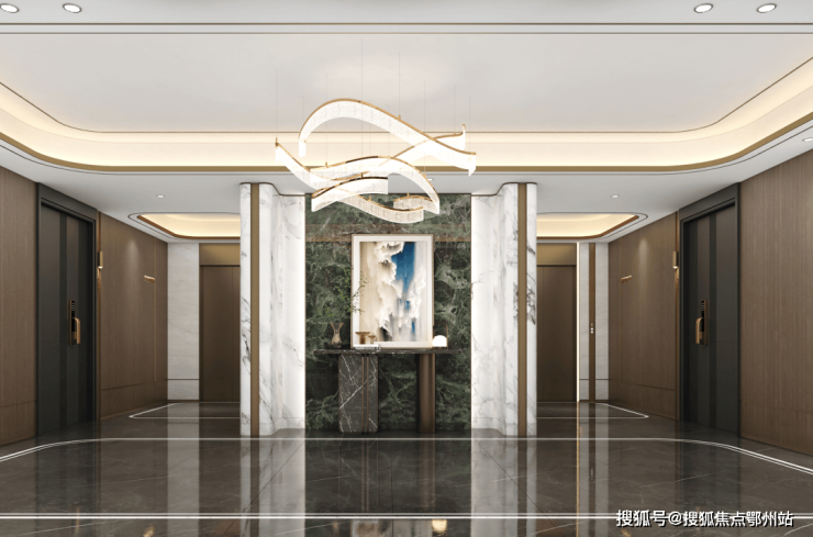 星级精装公区:极奢酒店式公区设计,臻选普拉达绿奢石等,打造雅奢高贵的空间氛围;地下车库星空穹顶,每户门口均设有金属壁灯、不锈钢标识牌,专属的体面;