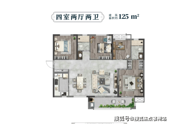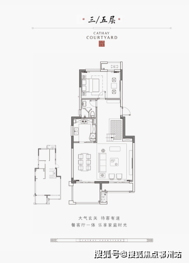 院居小高层105-143㎡:奢阔通透三、四房,以高标准打造,重构高层人居体验,具备更强居住价值。