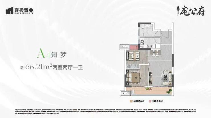 先来看小户型,国投·庞公府有建面 约66-68㎡两室两厅一卫户型: