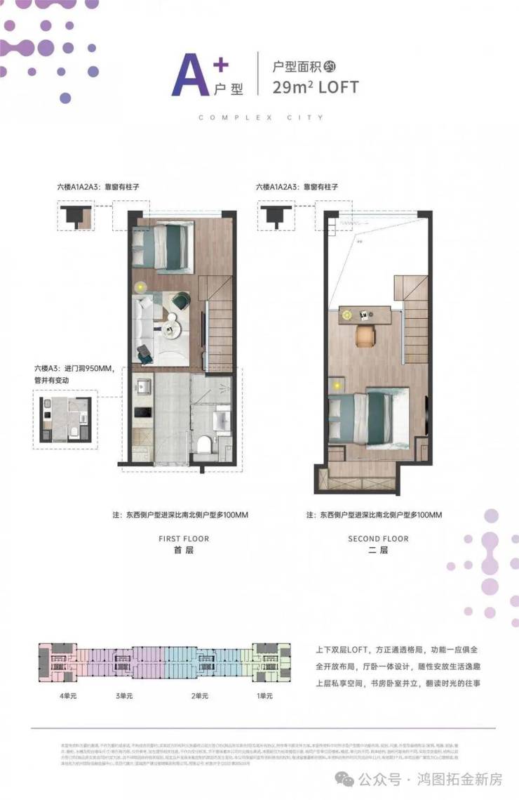 户型面积:29-51㎡精装平层&LOFT(层高4.19米)
