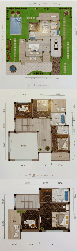 五大主题组团:森林别墅、亲水别墅、草原别墅、阳光坡地别墅等,依托原生山体、湖泊打造动态水系景观。