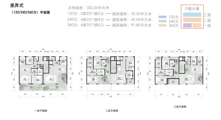 建面约290-360㎡宅院式合院;