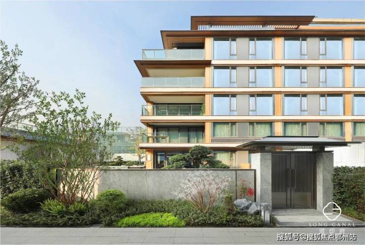 项目以现代审美和设计手法,提取中式美学造极时代的宋式美学,排屋、叠墅立面首层采用大面积淳如玉釉的白色石材,二层及以上立面以大量金色勾边营造,古铜深色作为檐口插色低调内敛而富有华贵意蕴建筑。