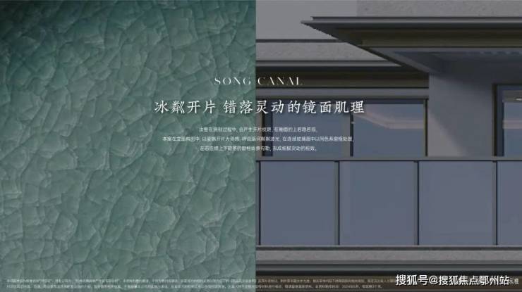 大玻璃构造的天青画屏,还原宋代天青汝窑“玛瑙入釉,炼镀金边”的金属线条勾边,以及将运河的粼粼波光与汝窑冰粼开片相结合的窗框做法,错落的线条形成灵动的韵律。
