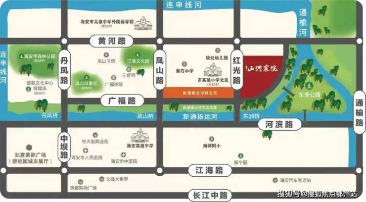 碧桂园海安携手第二子敬献海安,择址海安老城新扩生态区,与东洲公园,通扬河一路之隔,对望凤山景区,新通扬河,通榆运河,申场河,连申线河四河犹如护城河环绕,真的是难得的山水宝地。
