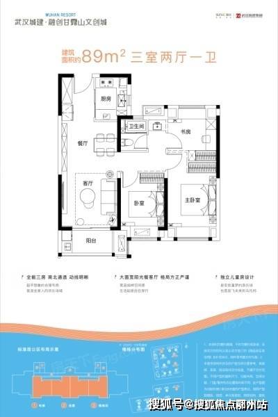 楼盘户型:3种户型,建面:89-115㎡ 3室2厅2卫 (建面:115)