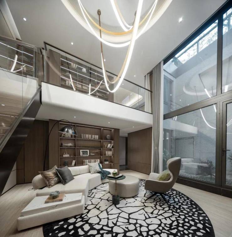 下叠带有私家庭院和挑高5.8米(可隔为双层)的双地下室,中叠拥有入户花园和露台,上叠享有约80㎡的整层星空露台,实际使用面积最高可达425㎡,这一空间尺度在杭州叠墅市场中独树一帜。