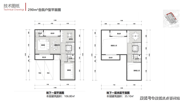 纯风貌别墅:共121套,地上2-3层,主力户型建面约230-760㎡,实际使用面积455-1000㎡