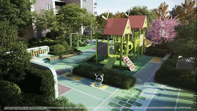 在社区内部,深嘉上府通过丰富的洄游动线,串联 阳光草坪、童梦乐园、全龄运动等, 打造全龄的活动空间。