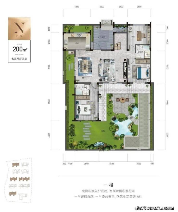让生活的所有美好憧憬于此落地生根。南入户建面约200㎡新中式合院,上下两层七室设计,有天有地不受邻里干扰,即便是三代同堂也绰绰有余。