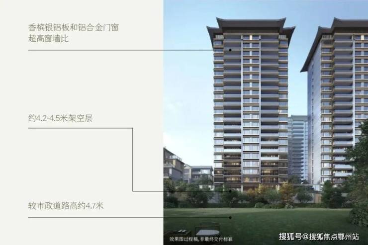 高层:香槟银铝板和铝合金门窗/超高窗墙比