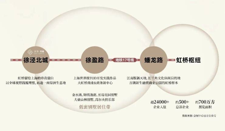大华 ·望樾占据徐泾发展热土正核, 距离17号线徐泾北城站仅约80米,1站 徐盈 路站的世界级TOD城市综合体、2站蟠龙路站的江南水岸商业中心、3站国家会展中心、4站虹桥枢纽 ,圆满城市精英生活的丰盛诉求。