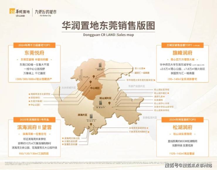 在东莞滨海湾新区,片区统筹之下,华润置地重磅打造了区域首个商品房项目 滨海润府,成为2024东莞年度销量冠军(数据来源:中原大数据)