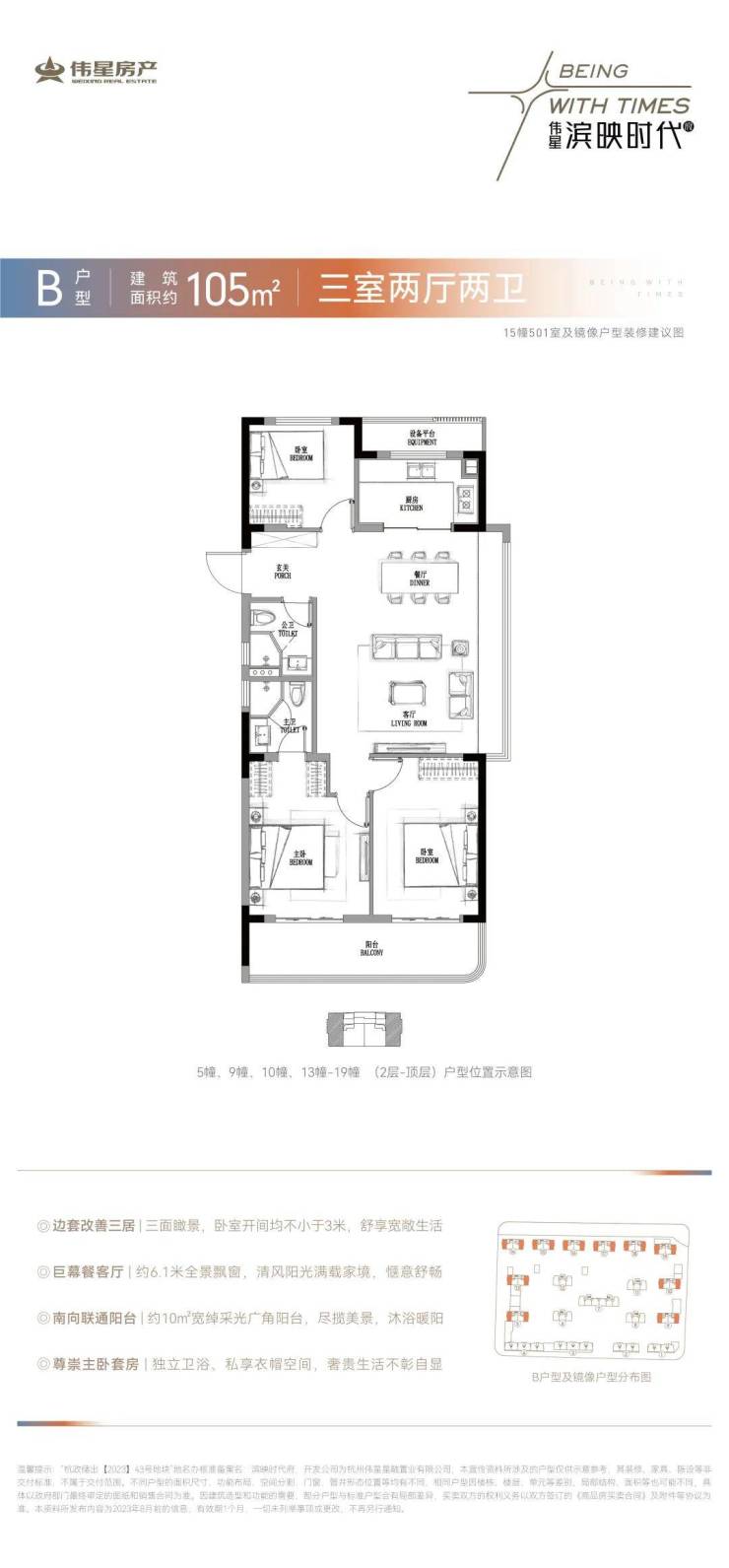 纯粹、走心,这是伟星第三子献给杭州的诚意之礼。 深度挖掘市场真实需求,融入行业先行者的思索与远见,自我修炼,精益求精,赋予产品长久的生命力。以伟星式的精进步伐,不断为城市带来更有质感和温度的人居作品,这是滨映时代府一经面世便已万众瞩目的重要原因。