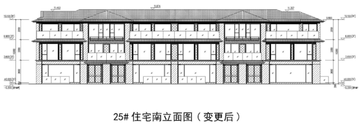洋房南立面图:非常流畅的造型,首层高4.2米,多楼栋设置架空设计,其余层高3.15米