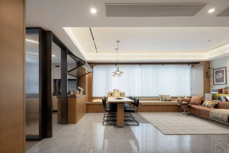 LDKB一体式打造,联动餐厨空间和休闲区,配上超大景观阳台,将室外景色引入户内,打破空间边界,引飞叶与花香穿堂留痕。阳台作为现代人向往自然的精神角落,以秘境庄园为主题进行空间设计,居家步履的尽头,邂逅勃勃生机。周末的午后,阳光打在摇椅上,品一盏清茗,暖意在花间鸟语中绽放。