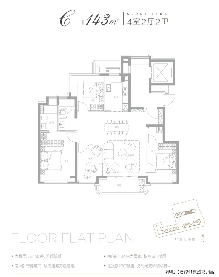 以已经开放样板间的建面约143㎡户型为例: