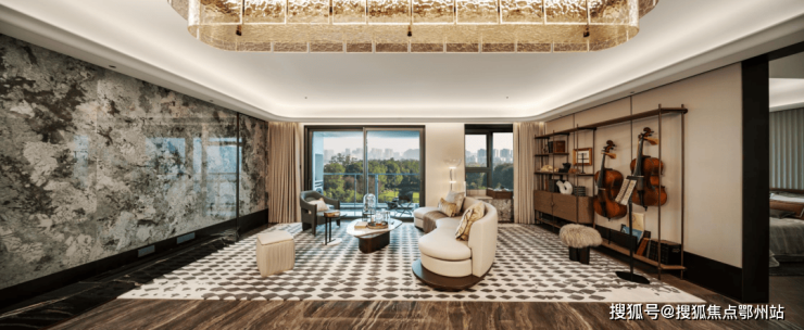 翎翠滨江通过大量的奢石、隐藏式细节将整个室内打造成了艺术的殿堂。