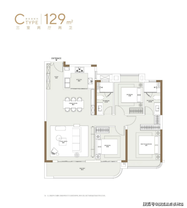 建面约129平的三房两卫产品,对于想体验边户极致通透感的伙伴就是性价比极高的选择了,面积段适中,改善无压力。