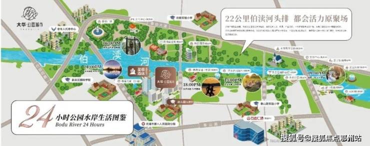 项目紧邻地标型综合性滨水区域——伯渎河公园滨水景观带,拥有一线滨江景观。伯渎河人文生态廊道规划建设以“梦回伯渎,七里长廊”为主题总体景观结构的约65万方滨水生态氧吧,